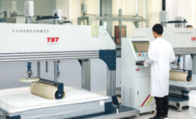 床垫铺面耐久性测试 140kg的滚筒来回滚压3万次 无破损、断簧,垫料无移位