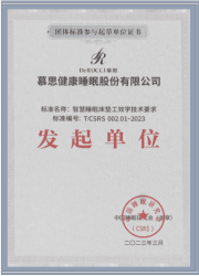2023年以发起单位参与编制发布《智慧睡眠床垫工效学技术要求》团体标准:明确了智慧睡眠床垫的概念并围绕概念建立起了智慧床垫的一般原则。